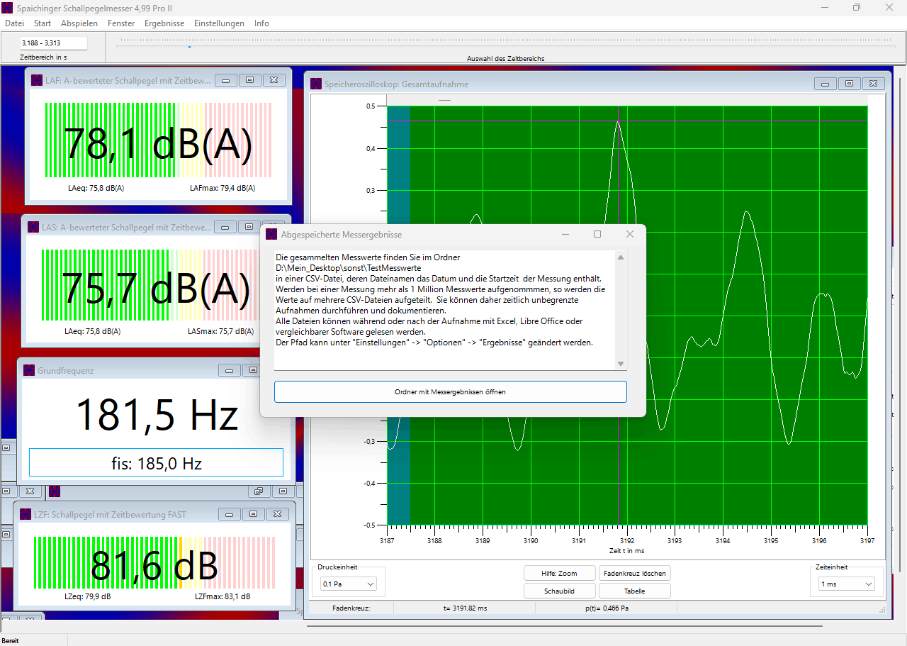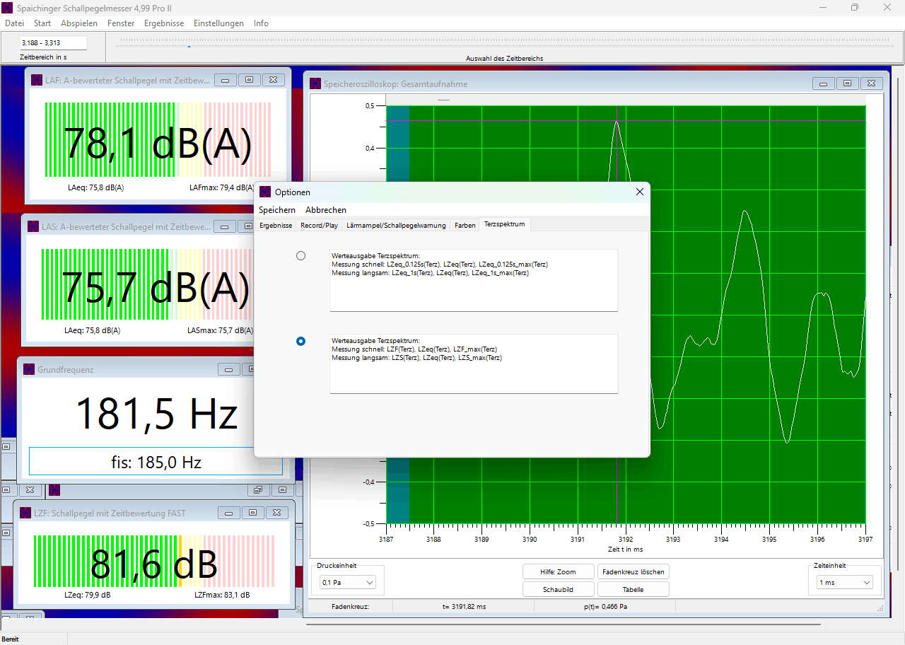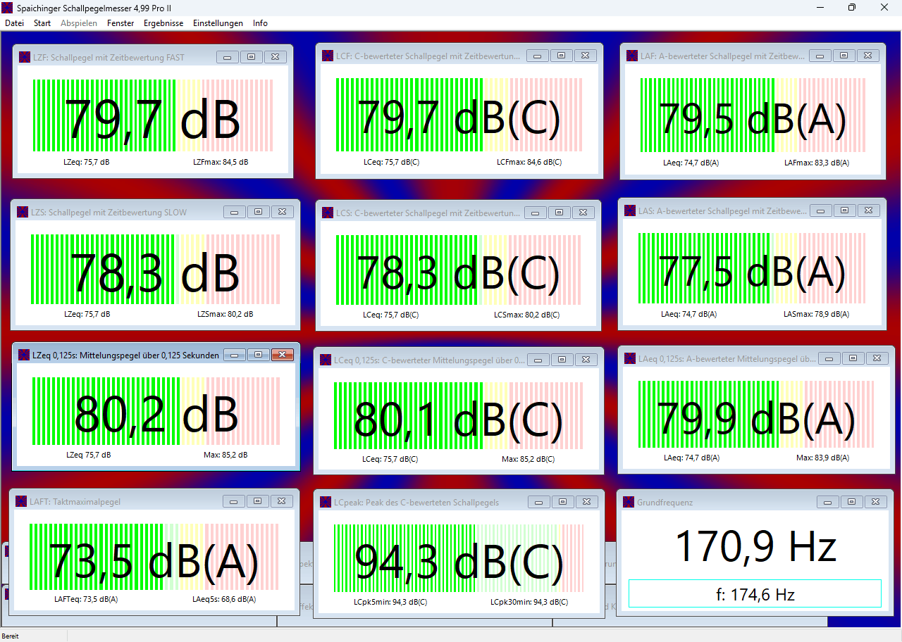 Mithilfe der Pro- und Pro-II-Version des Spaichinger Schallpegelmessers können Sie eine Vielzahl von Messgrößen erfassen: