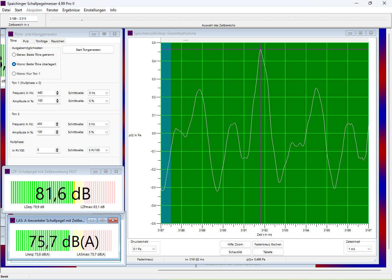 Der Schallgenerator kann auch bidirektional betrieben werden: Sie können gleichzeitig den Schallgenerator nutzen und Schallmessungen durchführen.
